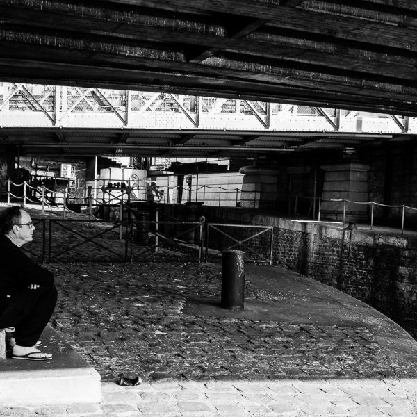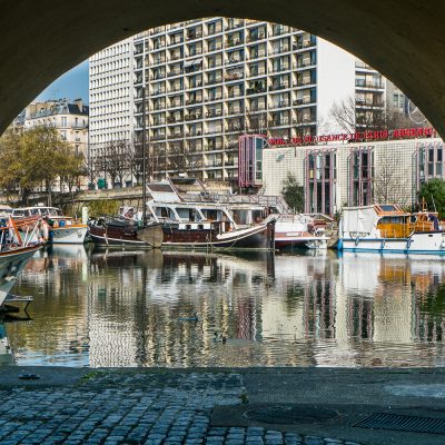En quittant les bords de Seine à hauteur du quai de la Rapée et de l’Institut médico légal (là où atterrissent les défunts homicidés) se situe l’embouchure du canal Saint Martin, les quais aimables du fleuve s’évanouissent et on pénètre dans un entre-lac de pont, de tunnel, d’eau qui se pose là.